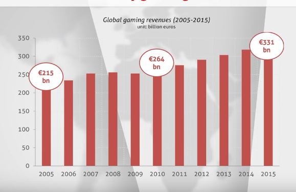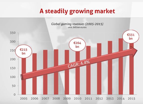 Au début du mois d'avril 2016, la firme « Global Betting and Gaming Consultants » dit que le marché des jeux d'argent avait augmenter de 328% en Europe, de 2005 à 2015. Le marché européen des jeux d'argent et de hasard est l'un des plus importants et dynamiques.