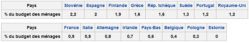 On peut donc constater que certains pays européens comme la Slovénie, l'Espagne et la Finlande sont les pays dans lesquels le budget des ménages dédié aux jeux d'argent est le plus important que pour les autres pays d'Europe.